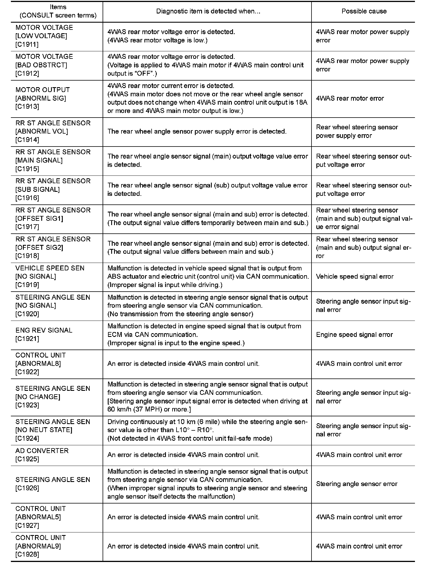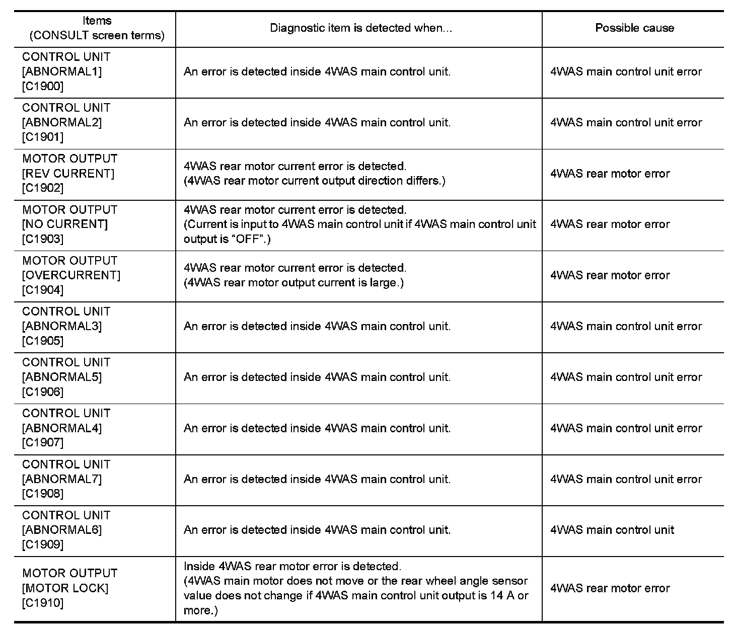 DIAGNOSIS SYSTEM (4WAS MAIN CONTROL UNIT)
