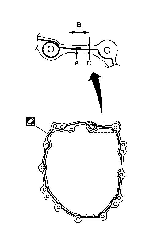 e.Apply recommended sealant to mating surface of rear extension as shown in the figure.