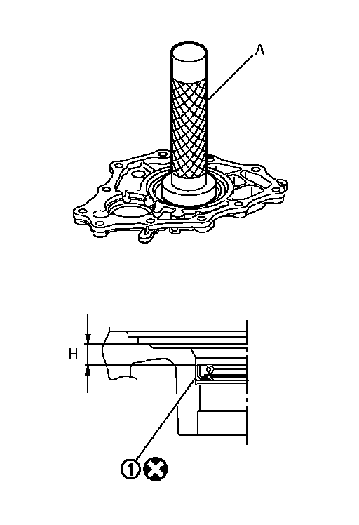 a.Install front oil seal (1) to front cover using the drift (A) [SST: