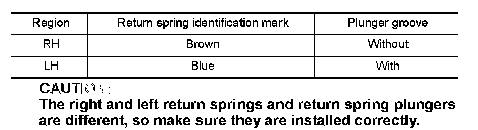 The right and left return springs and return spring plungers are different, so make sure they are installed correctly.