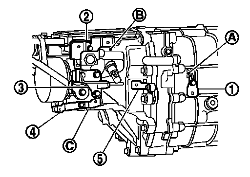 a.Install bracket (1) so that it contacts transmission case rib (A)