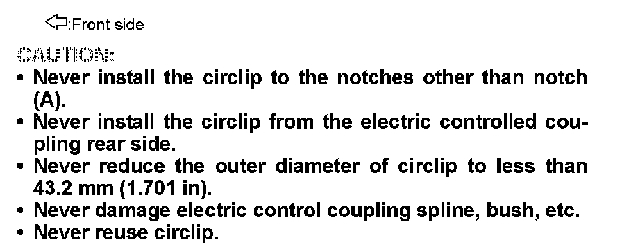 - Never reduce the outer diameter of circlip to less than 43.2 mm (1.701 in).