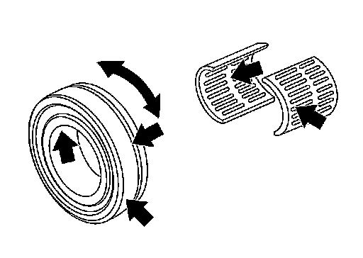 - Contact surfaces of bearing for wear, damage, etc.