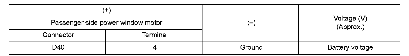 3.Check voltage between passenger side power window motor harness connector and ground.