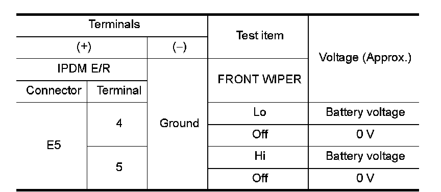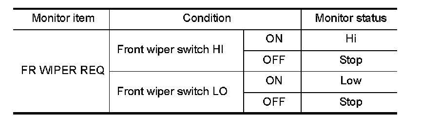 2.With operating the test item, check that front wiper LO/HI operation and OFF.