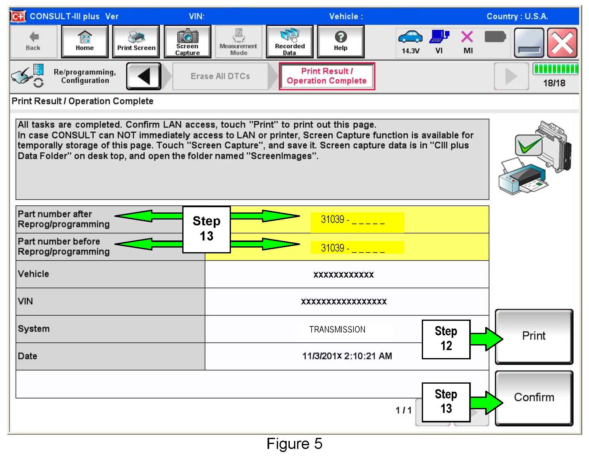 12. Print a copy of this screen (Figure 5) and attach it to the repair order for warranty documentation.