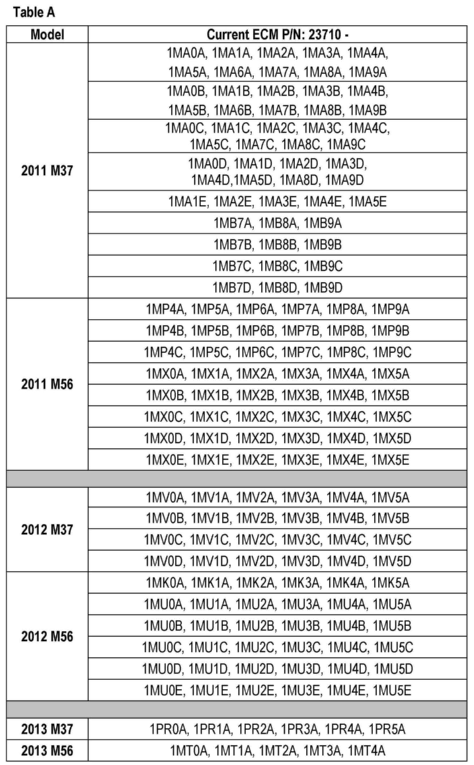 ^ If there is a match in Table A, continue with the ECM reprogramming procedure only.