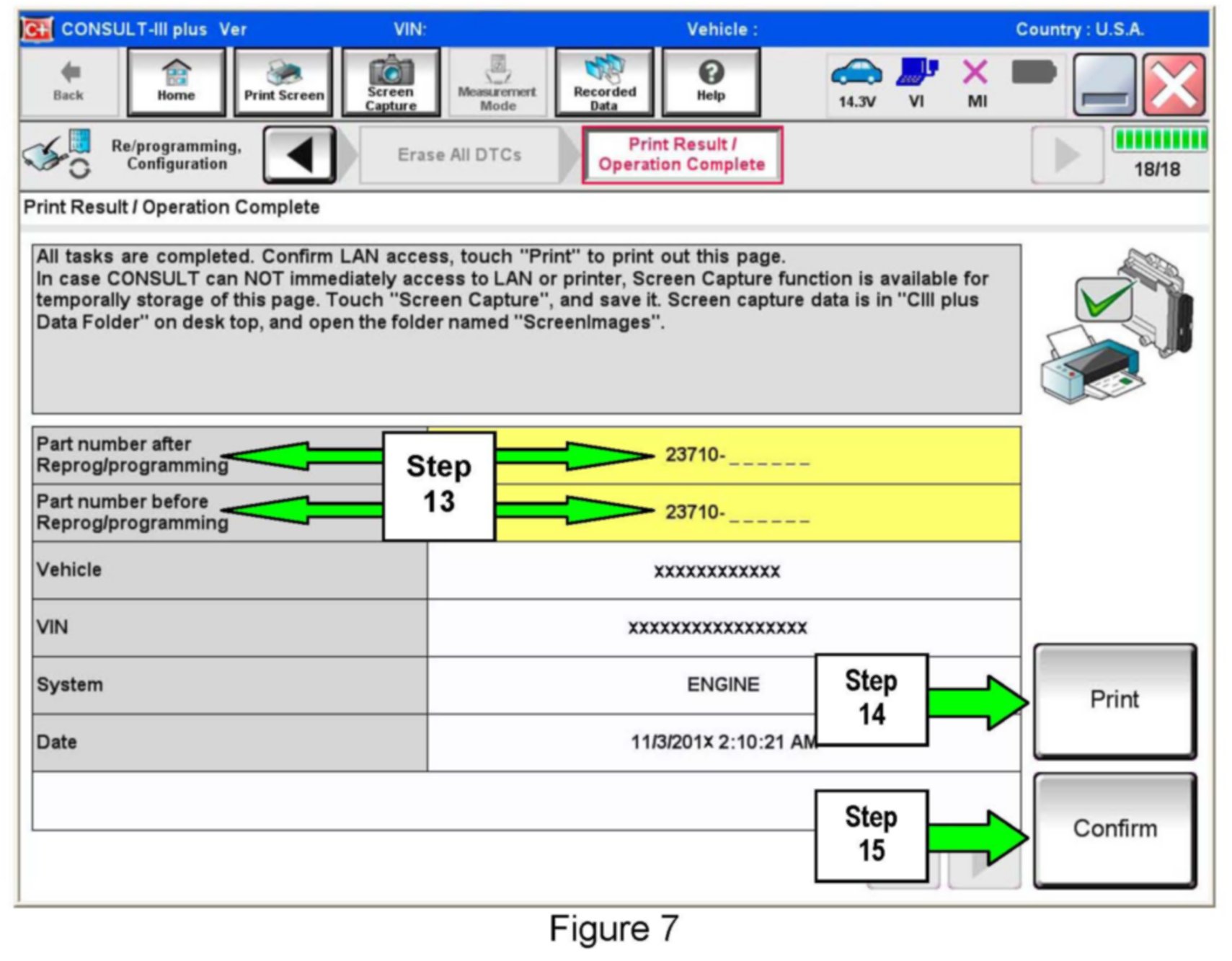 14. Print a copy of this screen (Figure 7) and attach it to the repair order for warranty documentation.
