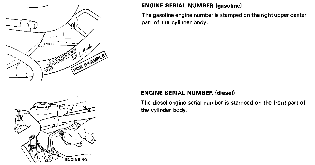 (4) ENGINE IDENTIFICATION: On the line where the engine code appears, read to the right to identify the engine.