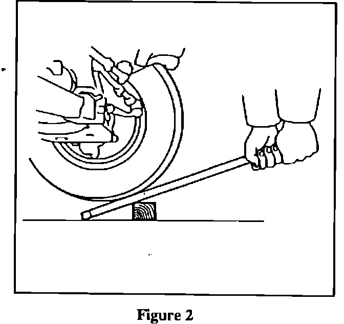 b. Place a lever under the front tire of the wheel being measured (Figure 2).