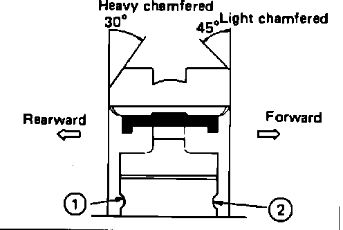 (1) When reassembling the synchronizer assembly, the side of the clutch hub with the oil (1) groove must face the heavy chamfer of the sleeve.