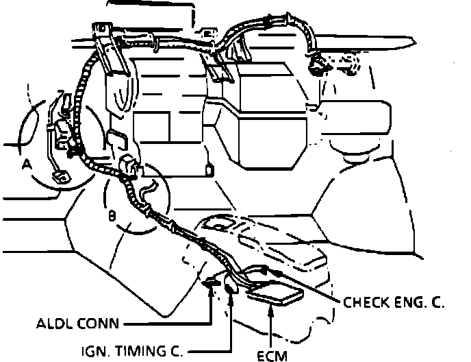 CAUTION: To prevent possible electrostatic discharge damage to the ECM, PROM or CALPAK, do not touch connector pins or soldered circuit components. The ignition must always be "OFF" when disconnecting or reconnecting power to the ECM.
