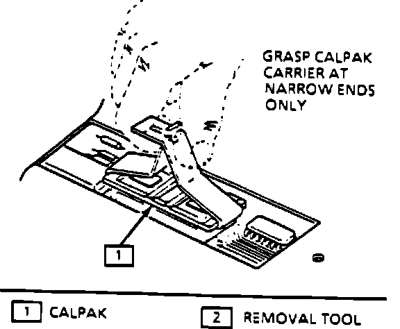 2. Remove CALPAK with removal tool. Grasp CALPAK carrier from narrow end only and gently rock from end to end while applying an upward force.