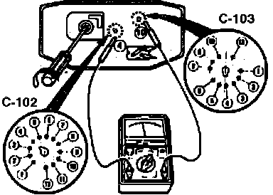 1. Connect a circuit tester to meter terminals No. C102-4 and C103-10, Fig. 11.