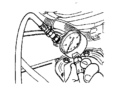 7. Note the pressure gauge reading with the engine idling.