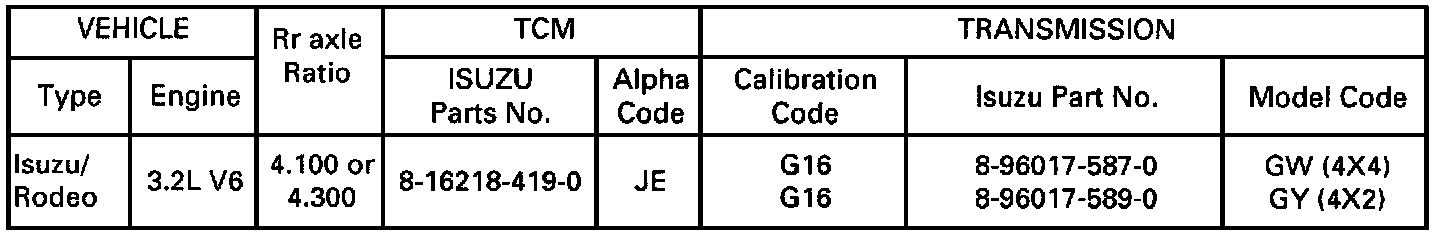 Chart 3 contains a list of all important information concerning rear axle ratio, Transmission Control Module