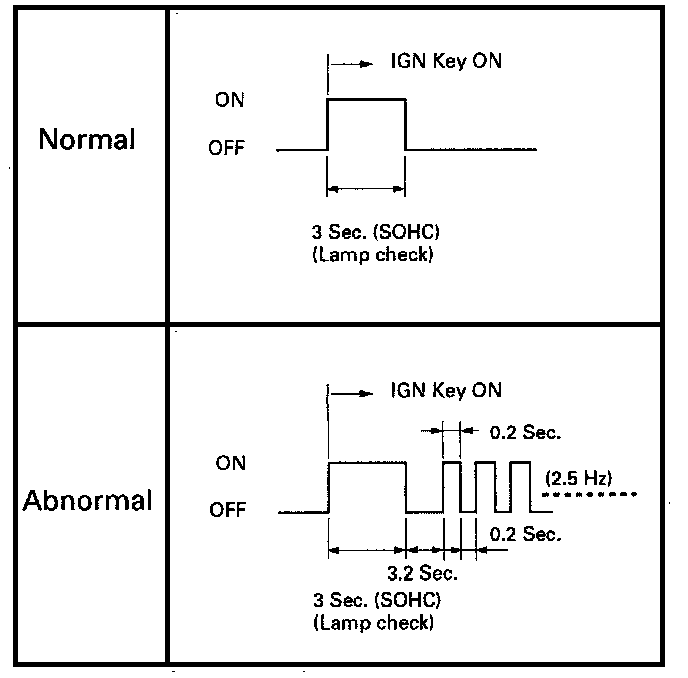 2. CASE: It is flashing and the flash is 0.2 seconds "ON" and 0.2 seconds "OFF"; when Ignition is on (Engine cranked or not). This means that there is a malfunction. Refer to "Diagnostic System Check".