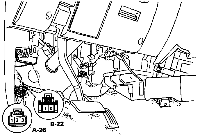 b. Check if Terminal 1 of diagnostic connector B-22 is shorted to ground. (Voltage is about 0 volts when there is a short to ground instead of 5 volts).