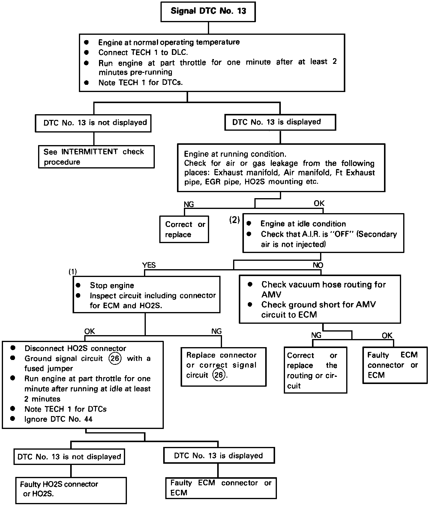 DTC NO. 13 / NO SIGNAL OR ABNORMAL SIGNAL FROM HEATED OXYGEN SENSOR (HO2S)