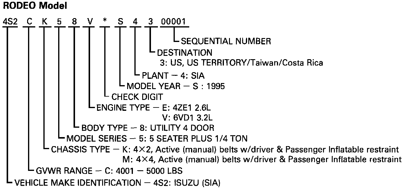 Rodeo (4WD) L4-2559cc 2.6L SOHC (4ZE1)