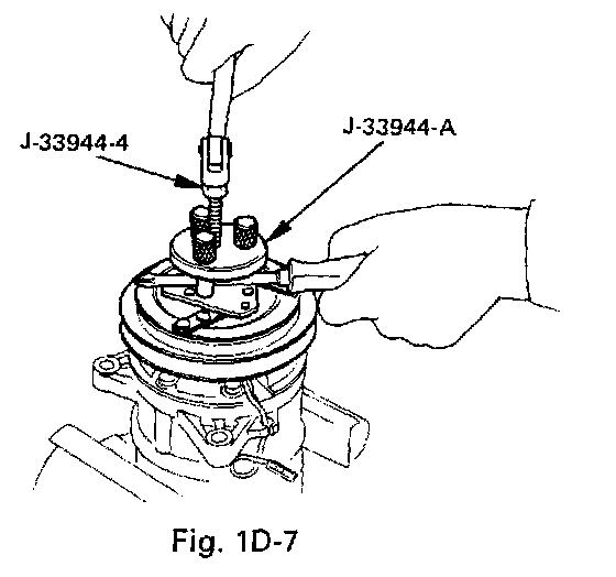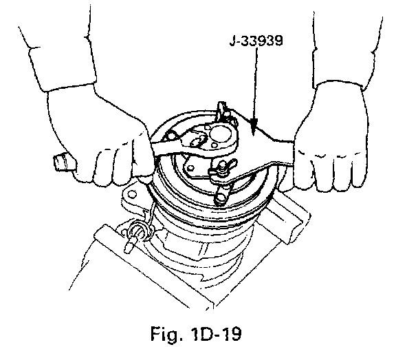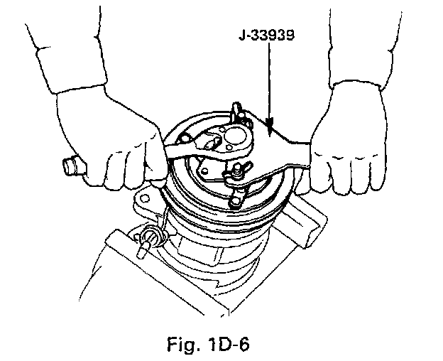 - Using pulley installer (J-33940-A) and drive handle (J-8092) to install the magnetic clutch pulley.