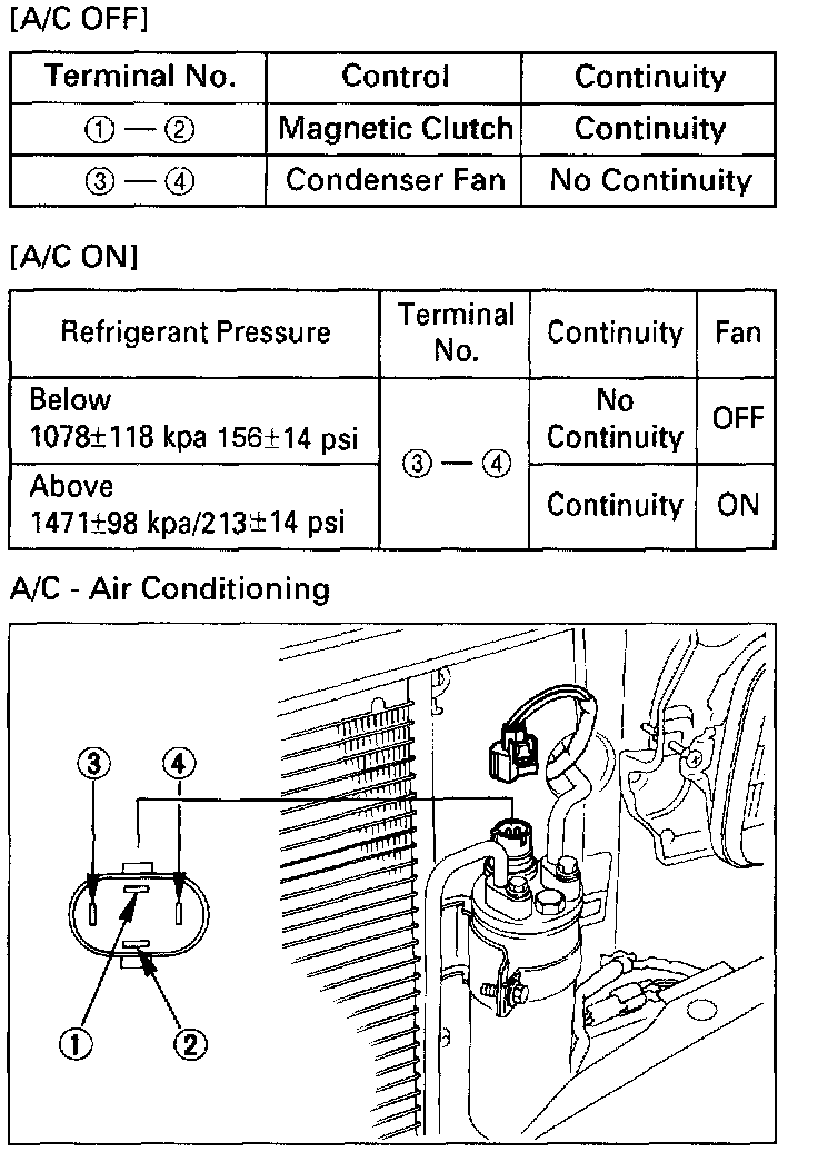 1. Disconnect the connector and check for continuity between pressure switch side connector terminal.