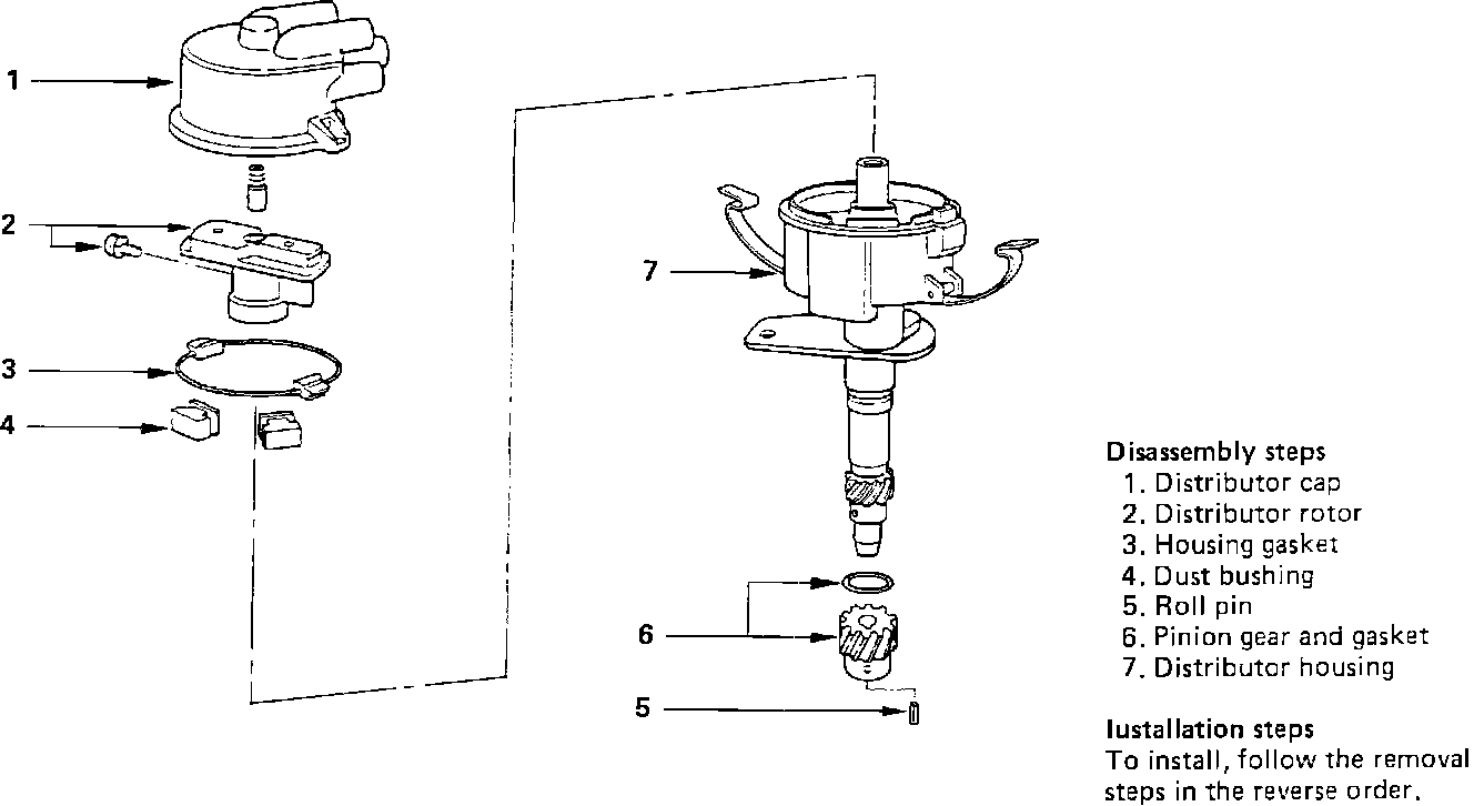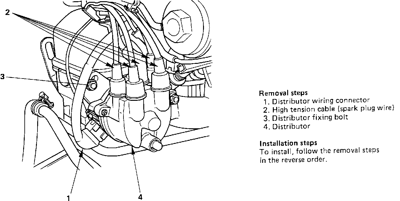Engine oil leakage in the distributor indicates that the distributor oil seal may require replacement. The distributor housing, which contains the oil seal, may be replaced as a unit.