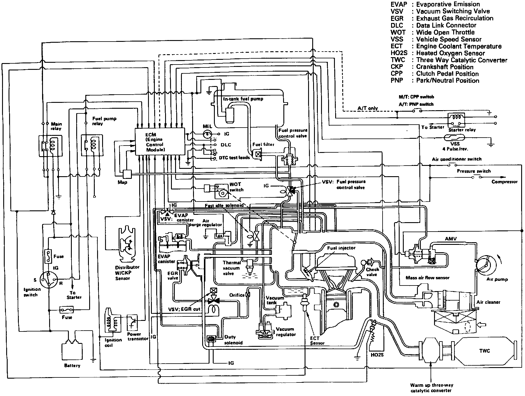 The Closed Loop Emission Control System is a computerized fuel, ignition and emission control system designed to maintain fuel economy, good driveability and reduced vehicle emissions. An Engine Control Module (ECM) monitors data from various sensors and controls functions such as air/fuel ratio, emission control devices and on-board diagnostics.