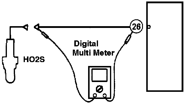 a. Check that continuity exists between the Engine Control Module (ECM) Harness Connector Terminal 26 and Heated Oxygen Sensor (HO2S) Harness Connector Terminal.