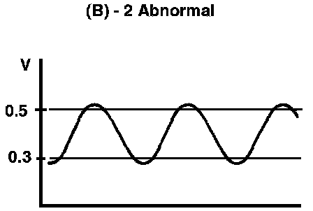 Reading is steady or with slight fluctuation, and is under 0.3V or above 0.6V.