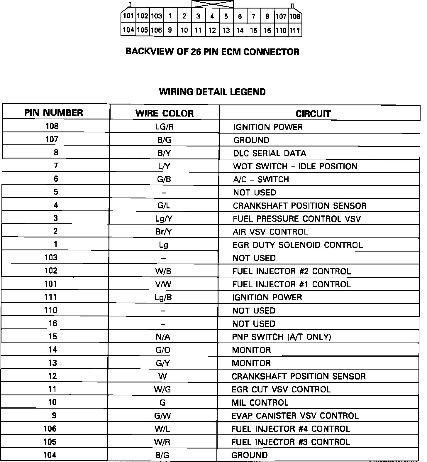 ECM CONNECTOR WIRE COLORS