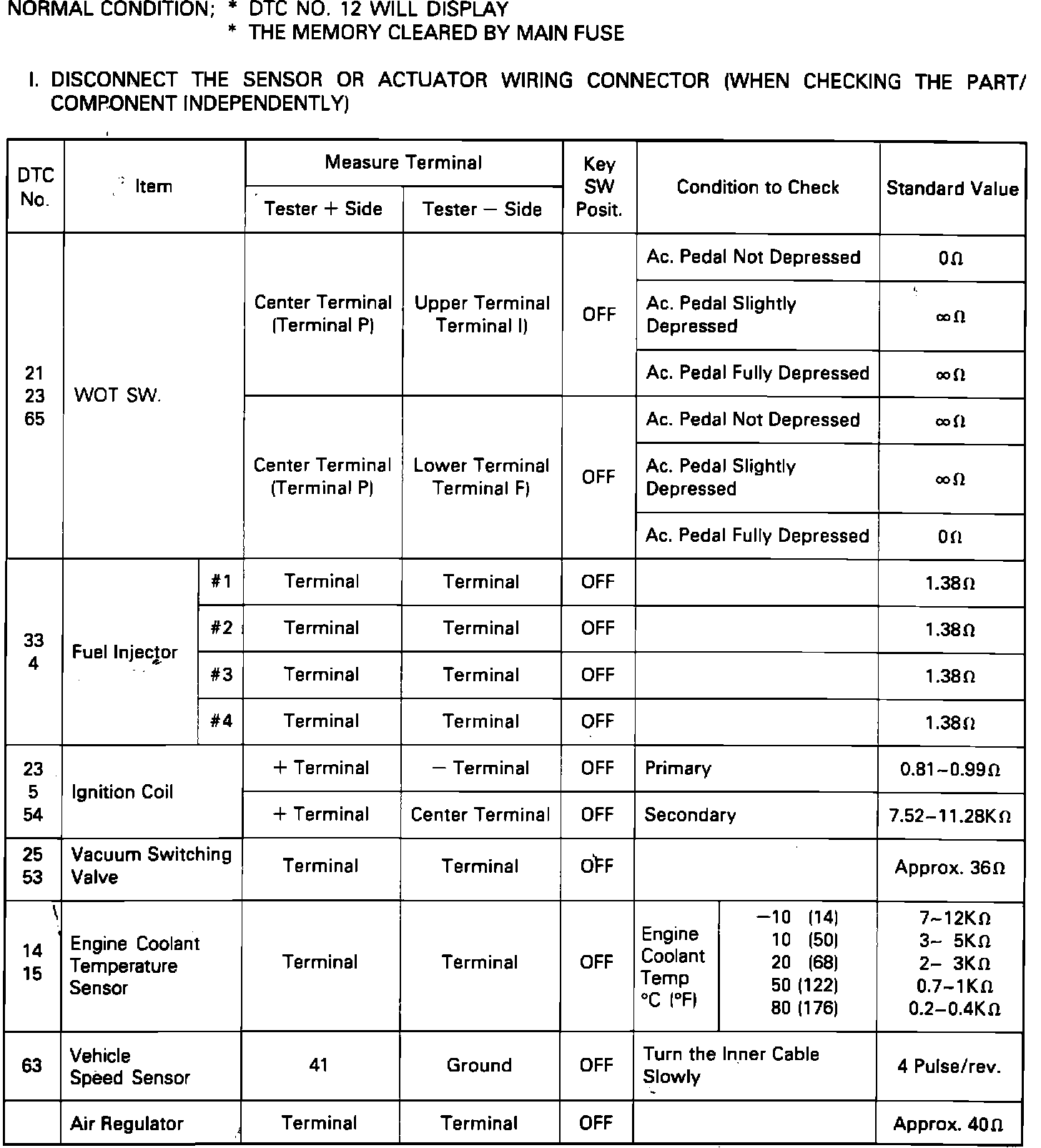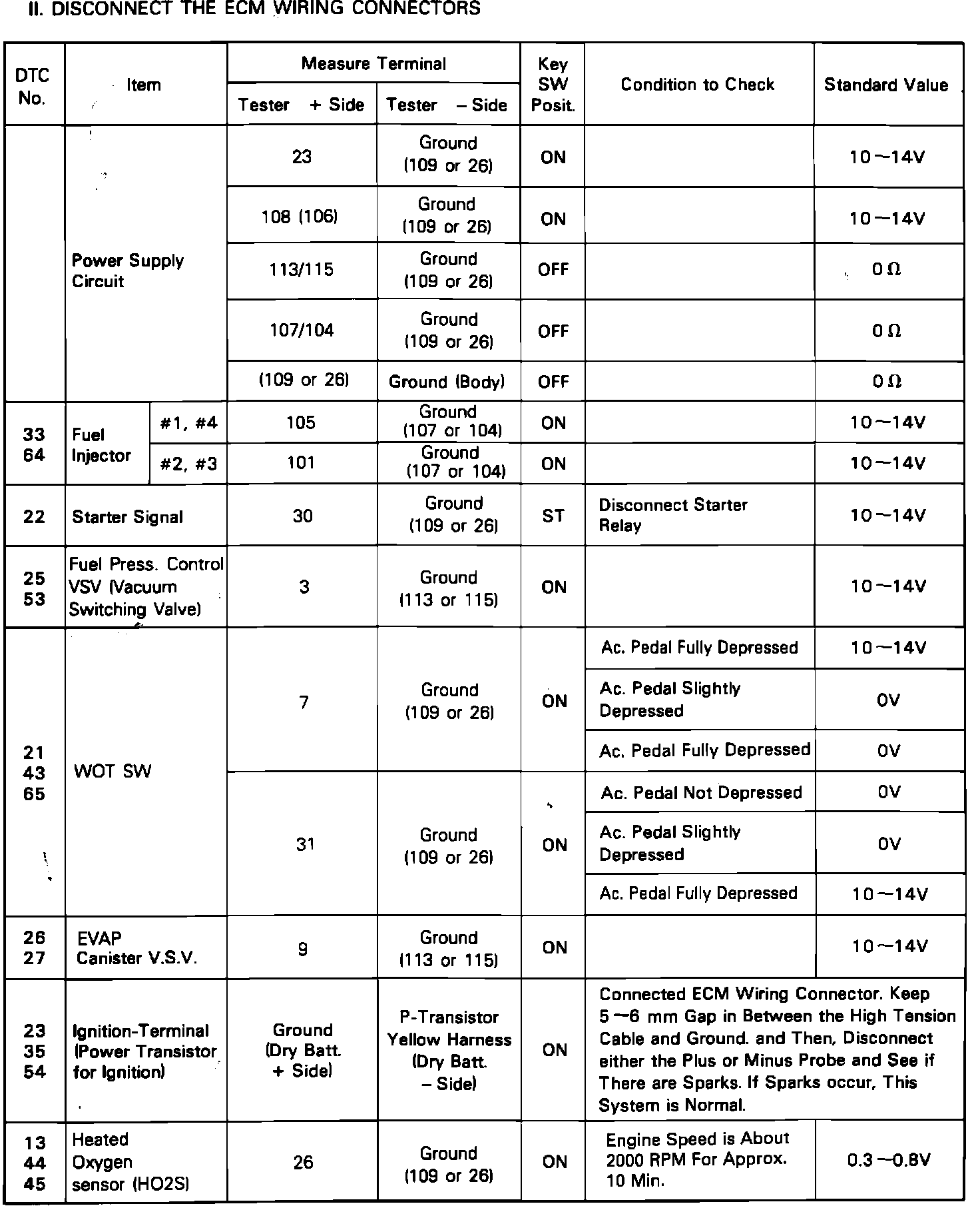 EXPECTED VALUES AT ECM WITH HARNESS DISCONNECTED