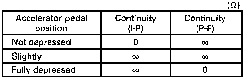 2. Make a continuity test across the Terminals with the Accelerator Pedal depressed in steps.