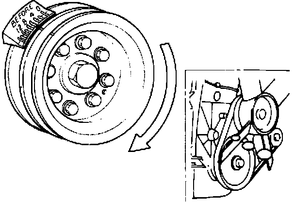 Crankshaft rotates clockwise when facing the crankshaft pulley.