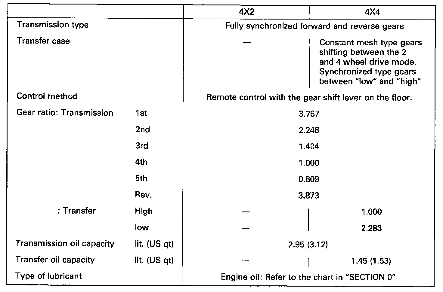 Rodeo (4WD) L4-2559cc 2.6L SOHC (4ZE1)
