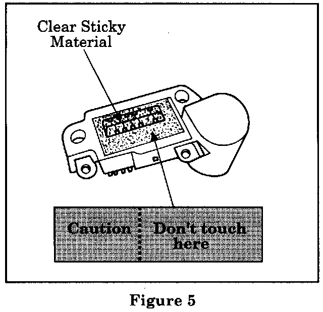 Avoid touching the clear sticky material on the IC regulator opposite the side of the aluminum fins (Figure 5). If this material is touched or disturbed, the IC regulator could be permanently damaged.