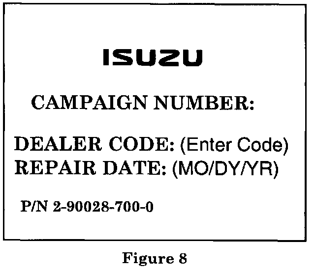 2. Using a ball-point pen, fill in the label with Campaign Number 97V-034, Isuzu dealer code, and repair date (Figure 8).