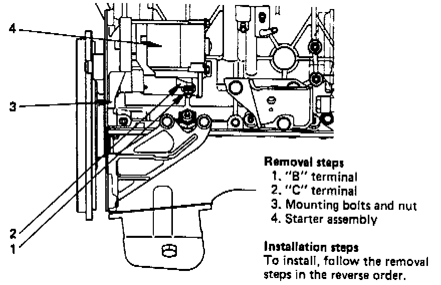 2. Remove the "B" terminal wiring connector from the starter.