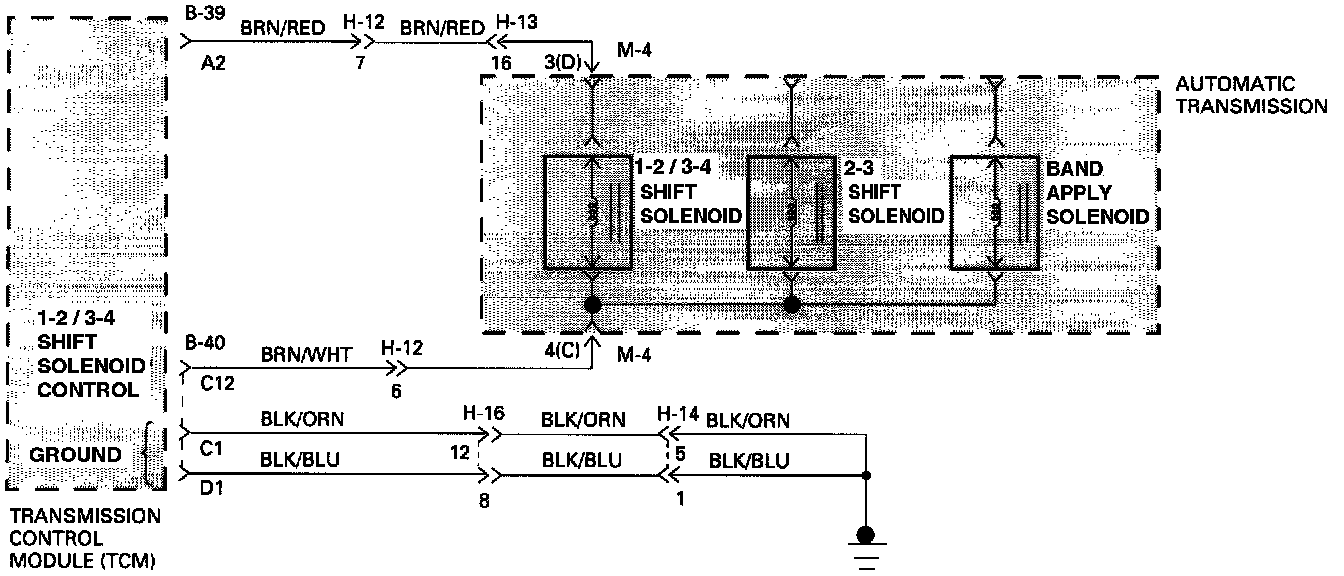 - When the Ignition is turned "ON", and before the Engine is cranked, the TCM activates the shift Solenoids (1-2/3-4, 2-3 and Band) to check for short circuits or open circuits. To do so the Gear is set to 4th, 3rd, 1st, 1st with band apply, 4th with no HSD. Each one of the 5 tests requires 0.15 seconds. If the Engine is cranked before the end of all tests, the remaining tests are not done.
