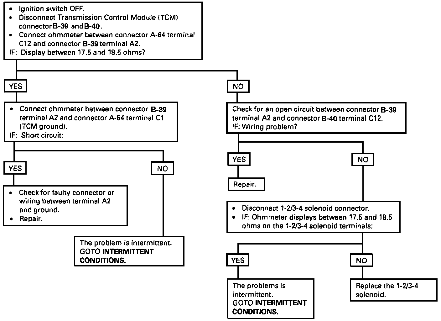 - The 1-2/3-4 Solenoid is a simple "ON"/"OFF" Solenoid located in the main case valve body. The Solenoid is normally the closed-type. In Second or Third Gear the Transmission Control Module (TCM) energizes the Solenoid to open a fluid inlet port. When the port is open, fluid pressure actuates the shift valve.