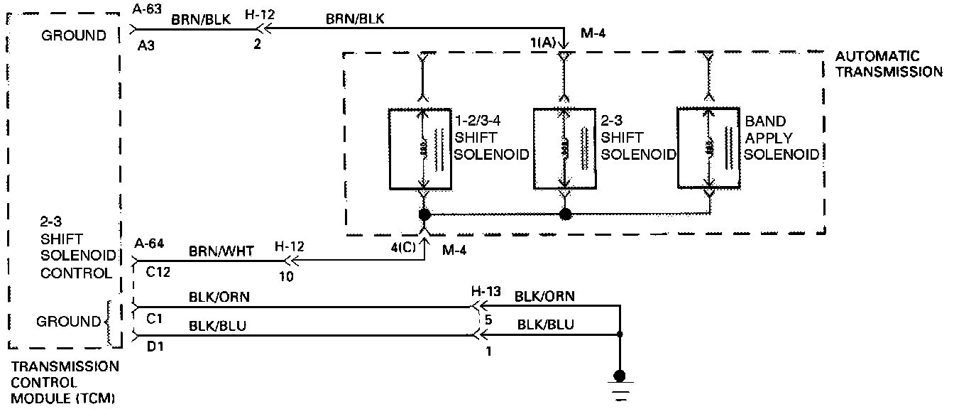 - When the Ignition is turned "ON", and before the Engine is cranked, the TCM activates the shift Solenoids (1-2/3-4, 2-3 and Band) to check for short circuits or open circuits. To do so the Gear is set to 4th, 3rd, 1st, 1st with band apply, 4th with no HSD. Each one of the 5 tests requires 0.15 seconds. If the Engine is cranked before the end of all tests, the remaining tests are not