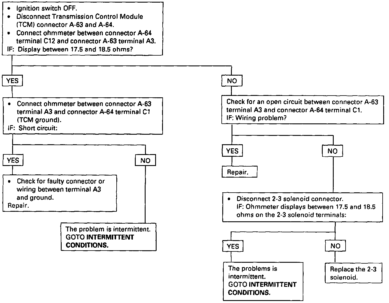 - The 2-3 Solenoid is a simple "ON"/"OFF" Solenoid located in the main case valve body. The Solenoid is normally the open-type. In First or Second Gear the Transmission Control Module (TCM) energizes the Solenoid to close a fluid inlet port. When the port is open, fluid pressure actuates the shift valve.