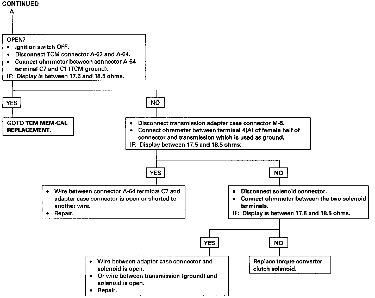 a. The Solenoid high side connected to TCM terminal C7 is shorted to voltage or open.