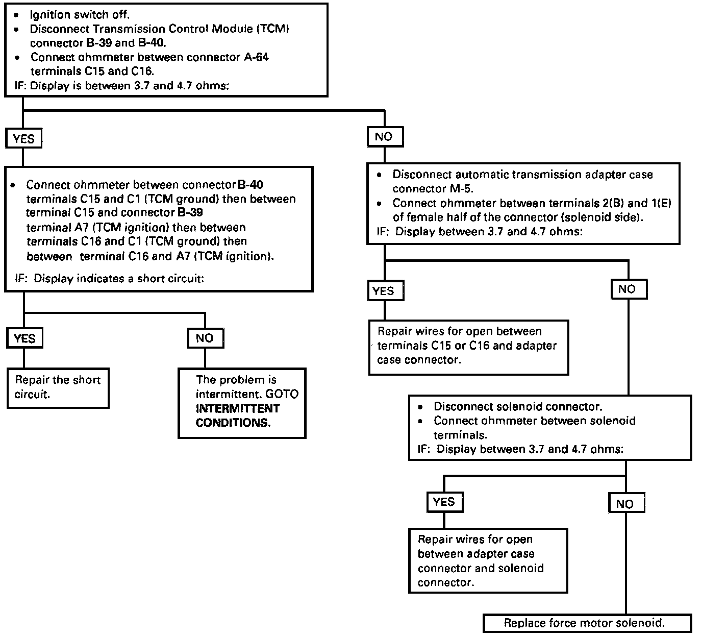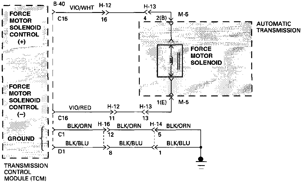- The Force Motor Solenoid is a device used to regulate Transmission line pressure. The Transmission Control Module (TCM) uses Throttle Position Sensor (TPS) information and Vehicle speed information to determine the line pressure appropriate for a given load. The TCM will regulate the pressure by applying a varying amperage to the force motor Solenoid. The applied amperage can vary from 0.1 to 1.1 amp. The TCM then monitors the amperage at the return line. If the return amperage is more than 0.2 amp from the commanded amperage, the DTC is stored.