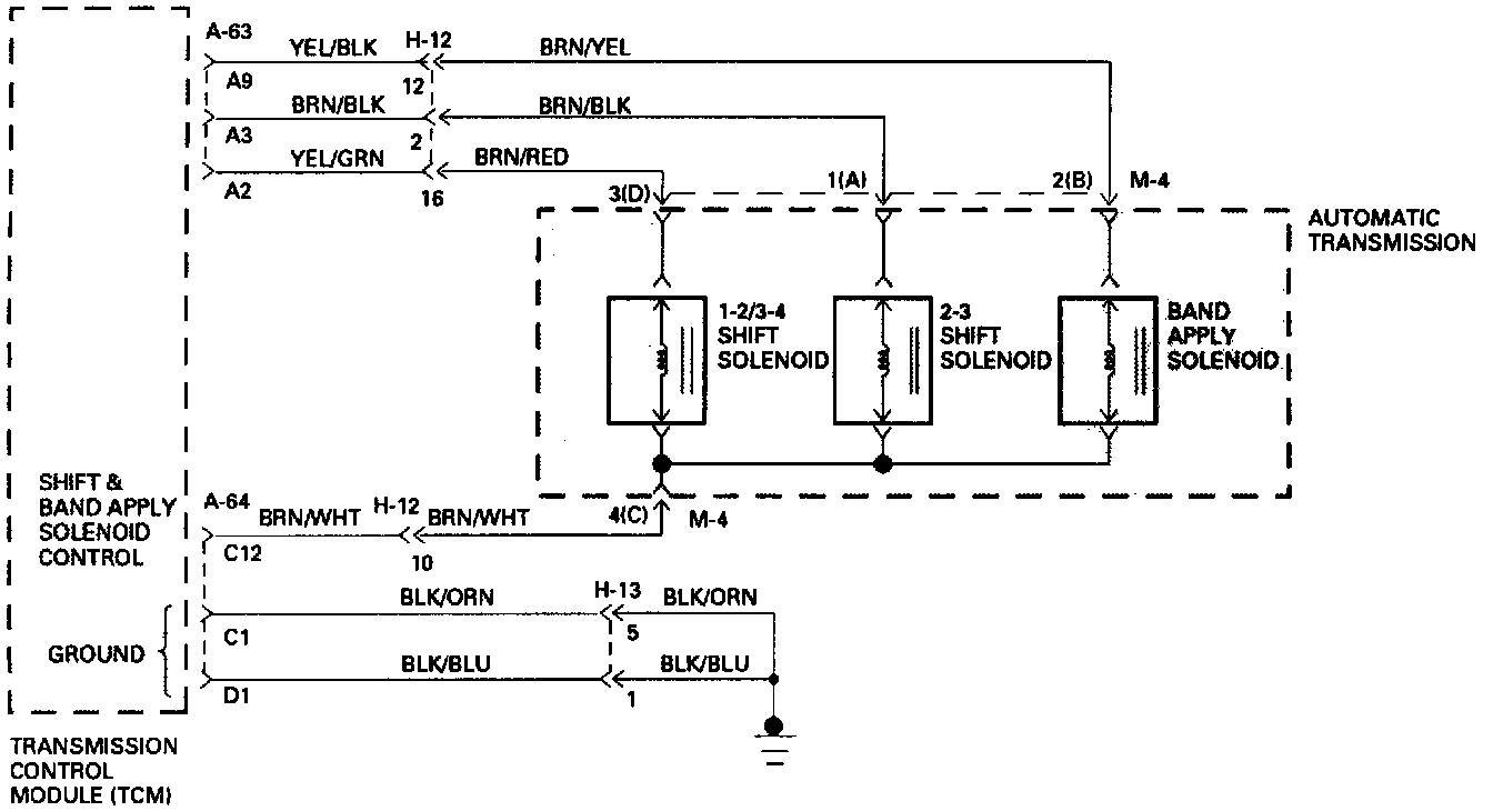 - When the Ignition is turned "ON", and before the Engine is cranked, the TCM activates the shift Solenoids (1-2/3-4, 2-3 and Band) to check for short circuits or open circuits. To do so the Gear is set to 4th, 3rd, 1st, 1st with band apply, 4th with no HSD. Each one of the 5 tests requires 0.15 seconds. If the Engine is cranked before the end of all tests, the remaining tests are not done.