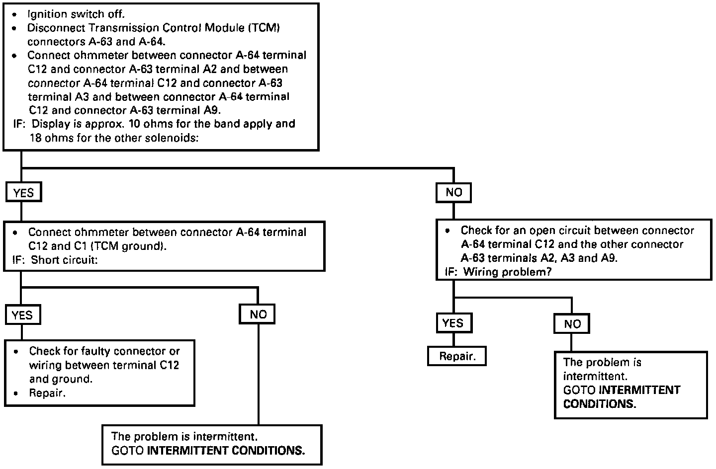 a. The Solenoid high side connected to TCM terminal C12 is shorted to ground or open.