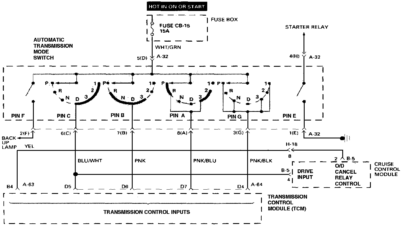 - The Mode Switch is also used to provide the information P or N to the Engine crank wiring. The Engine can be cranked only if connector A-32 terminal 4-H is connected to terminal 1-E, which is connected to ground.