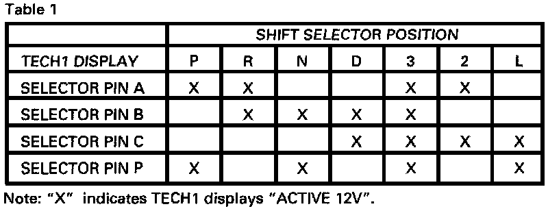b. Based upon Table 1, in Park Shift Selector position, the code is set when the Pin A is open or shorted to ground.
