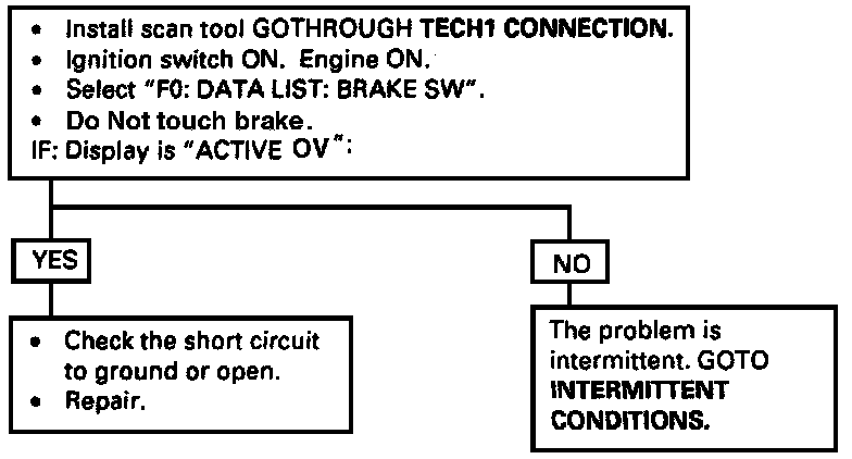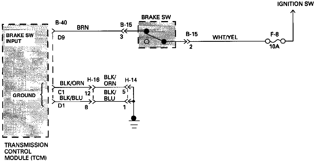- The Brake Switch input is opened when the pedal is released. TCM terminal D9 is grounded.