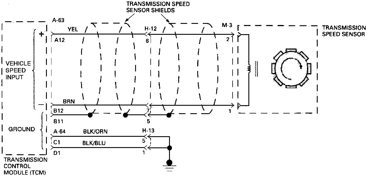 - The Transmission Output Speed Sensor provides information on Vehicle speed to the TCM. The Speed Sensor circuit consists of a magnetic induction type sensor. The sensor is mounted above a target wheel pressed on the output shaft in the Transmission extension. As the output variable voltage in the magnetic pickup. This alternating current (AC) signal is provided to the TCM. The voltage increases with the speed of the wheel but this is not used to define the speed of the Vehicle. As the Vehicle moves faster, the signal alternates faster between positive and negative voltages. The output speed information is proportional to the frequency of the signal.
